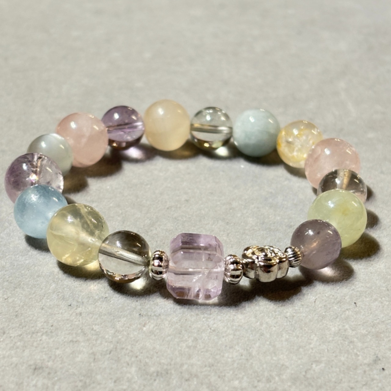 やわらかなパステルカラーが手元を優しく彩る、天然石ブレスレット。