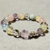 モルガナイト×アメジスト×アクアマリン×ホワイトムーンストーン 天然石ブレスレット 16cm