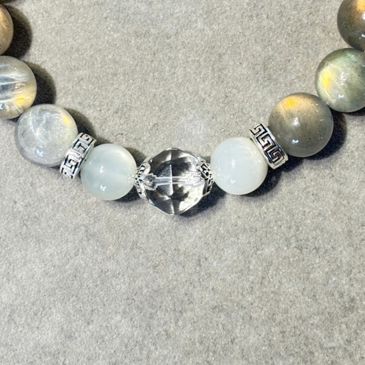 清らかなホワイトムーンストーンと輝きの強い**クリスタル(水晶)**をアクセントにした