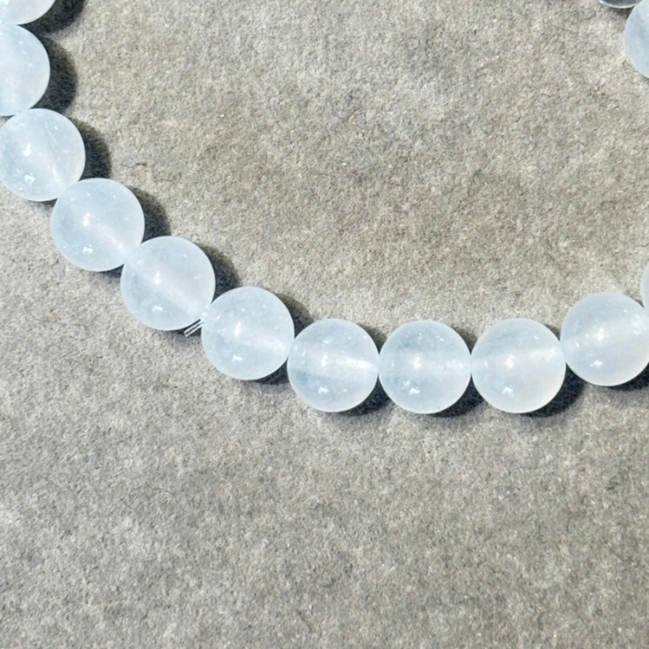 海のようなブルーのアクアカルセドニーに、愛を象徴するローズクォーツと浄化のクリスタルを合わせた