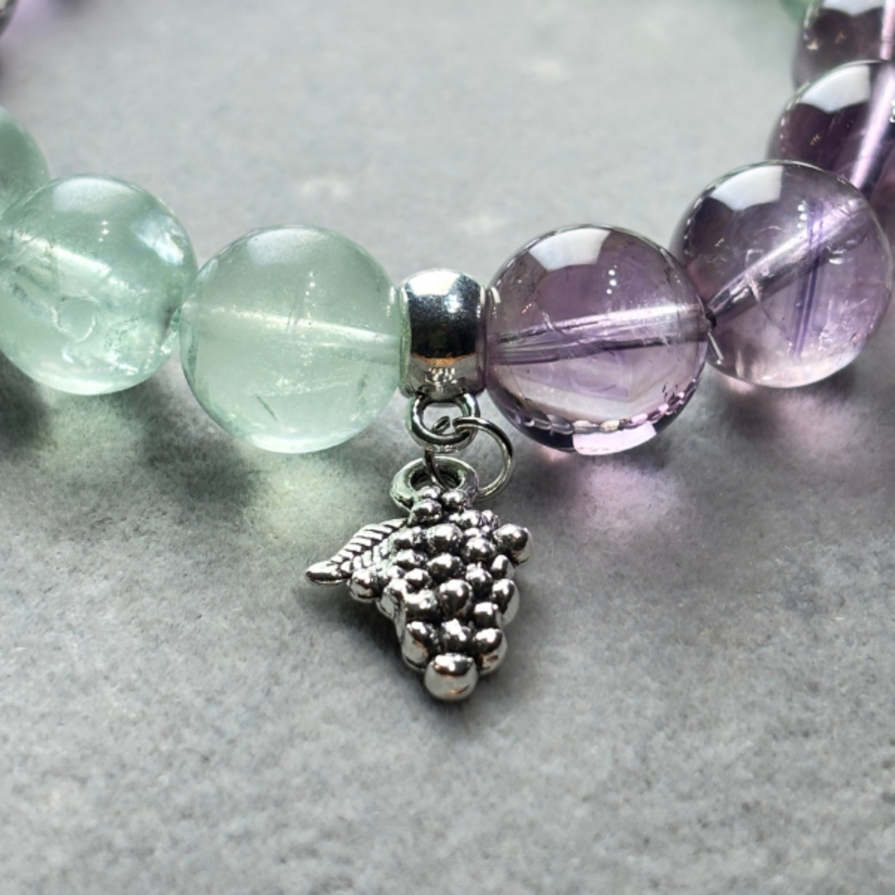 アクセントとして揺れる葡萄チャームは「豊かさ」や「実り」の象徴。