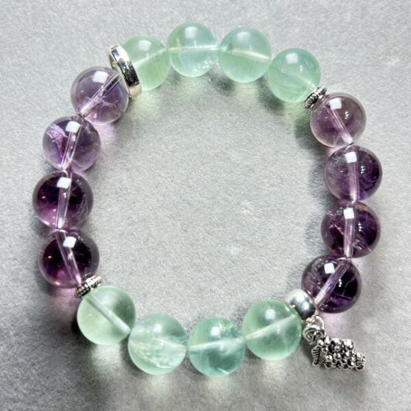 対をなすグリーンフローライトは、透明感のある優しい緑色が特徴で、思考のクリアリングや集中力アップに力を貸してくれます。